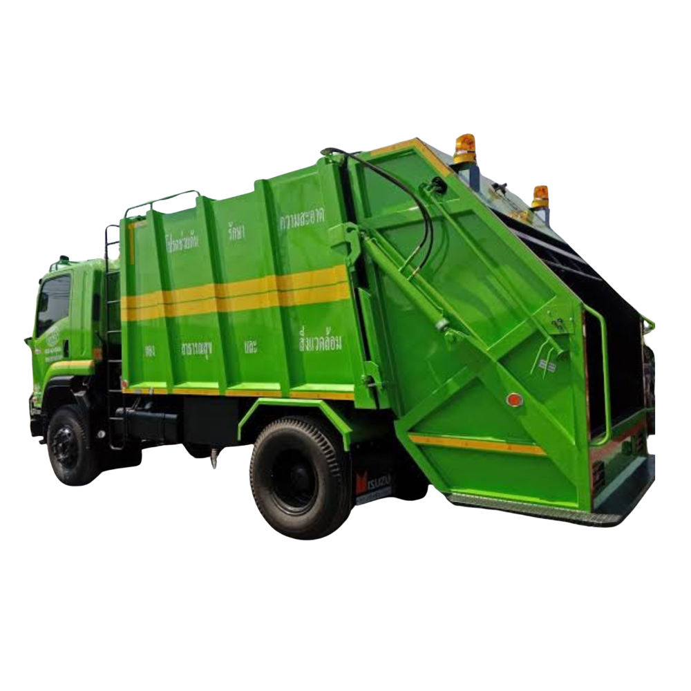 คุณสมบัติเด่น: ระบบไฮดรอลิกอัดขยะในตัว ถังเหล็กหนา ทนทานต่อการกัดกร่อน เหมาะสำหรับเทศบาลและ อบต.